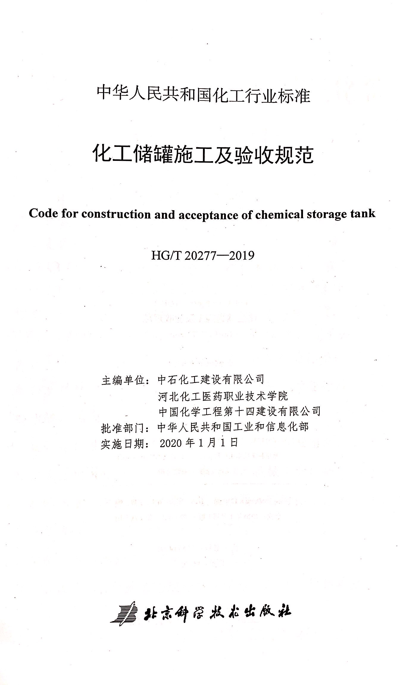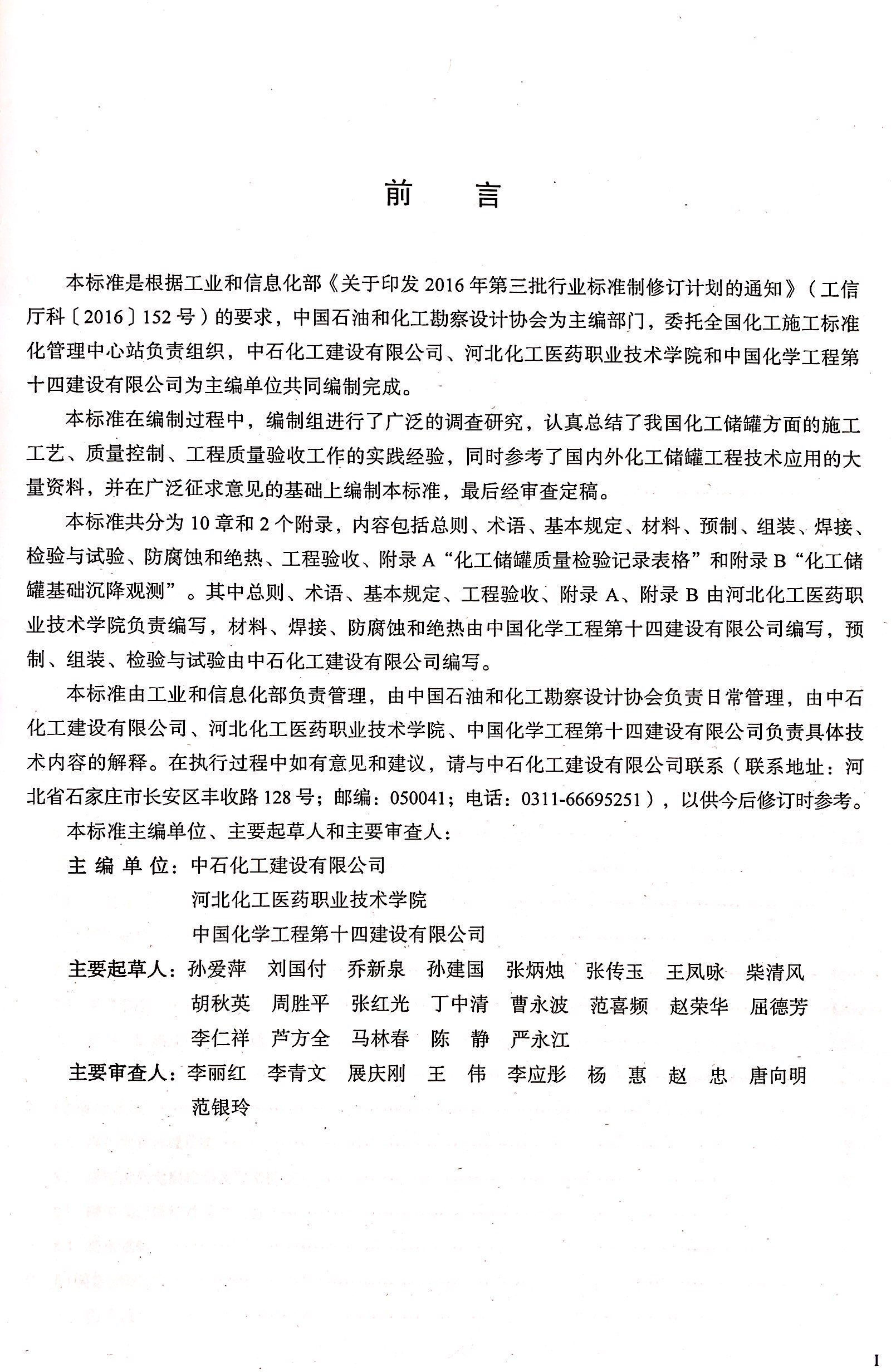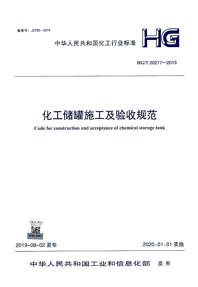 在標準編制過程中,編制組進行了廣泛的調(diào)查研究,認真總結(jié)了我國化工儲罐方面的施工工藝質(zhì)量控制,工程質(zhì)量驗收的實踐經(jīng)驗,同時參考了國內(nèi)外化工儲罐工程技術(shù)應(yīng)用的大量資料,并在廣泛征求意見的基礎(chǔ)上圓滿完成了標準的編制工作,由工業(yè)和信息化部于2020年1月1日發(fā)布實施。